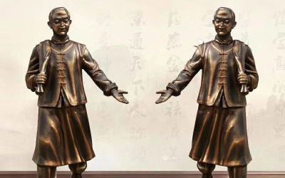 玻璃鋼仿銅雕塑是在雕塑造型制作完成后,利用仿銅漆和彩繪工藝處理雕塑表面,最終形成類(lèi)似于黃銅、紫銅、青銅等銅色效果,常見(jiàn)有仿銅浮雕、仿銅人物、仿銅佛像等等。